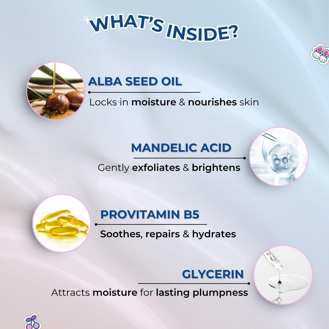 It’s a lightweight, milky-textured toner powered by Meadowfoam (Alba) Seed Oil, Mandelic Acid, and Provitamin B5 to hydrate, gently exfoliate, brighten, and soothe the skin, all in one step.