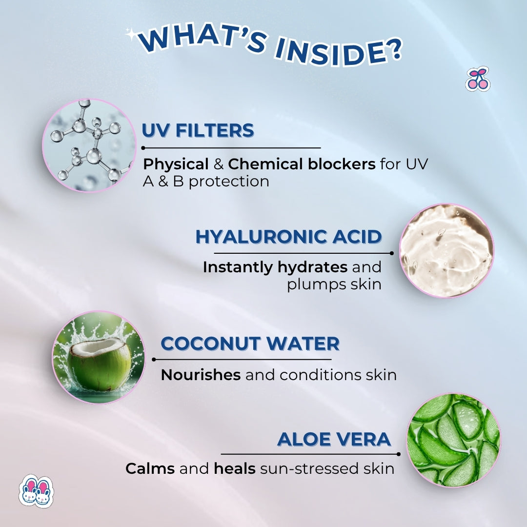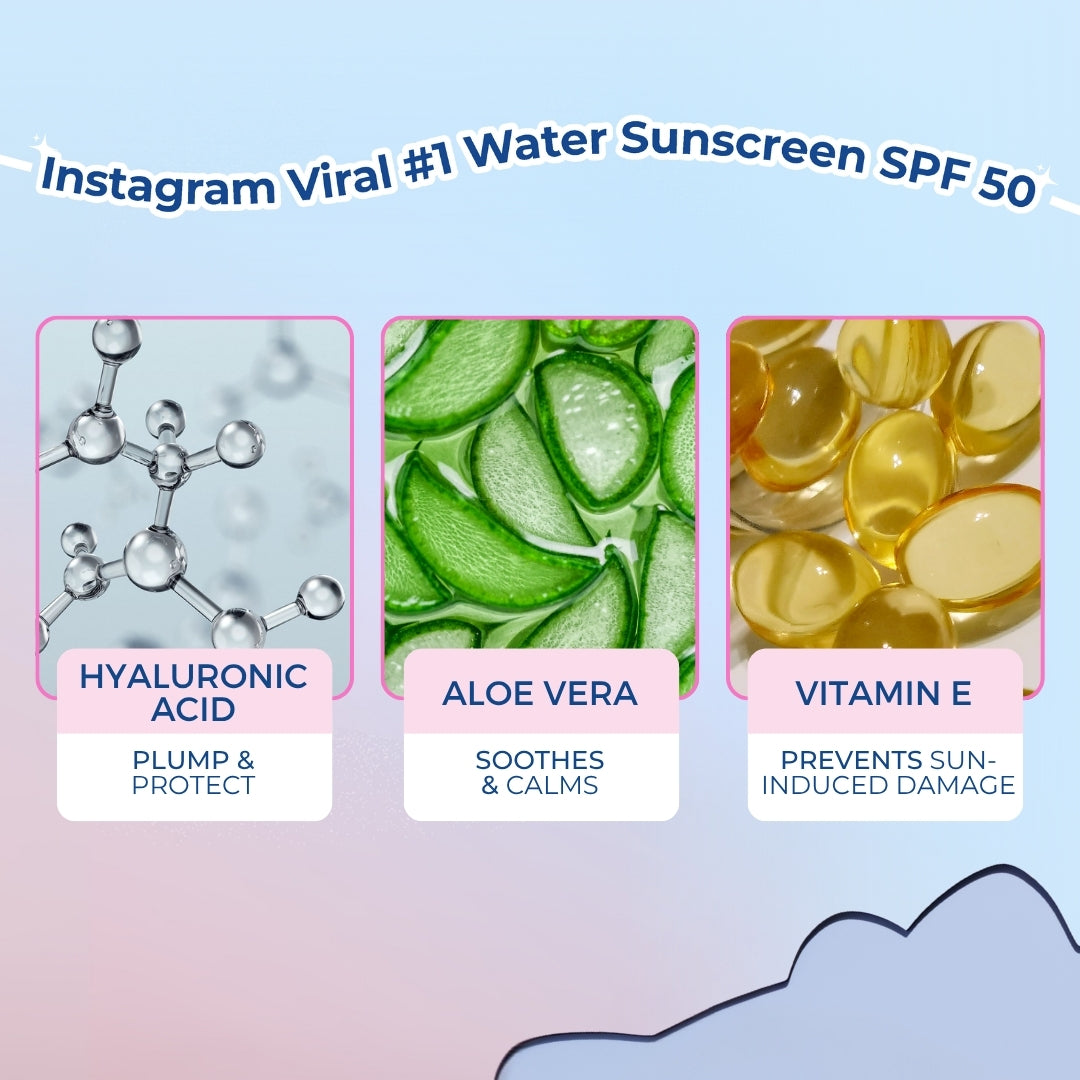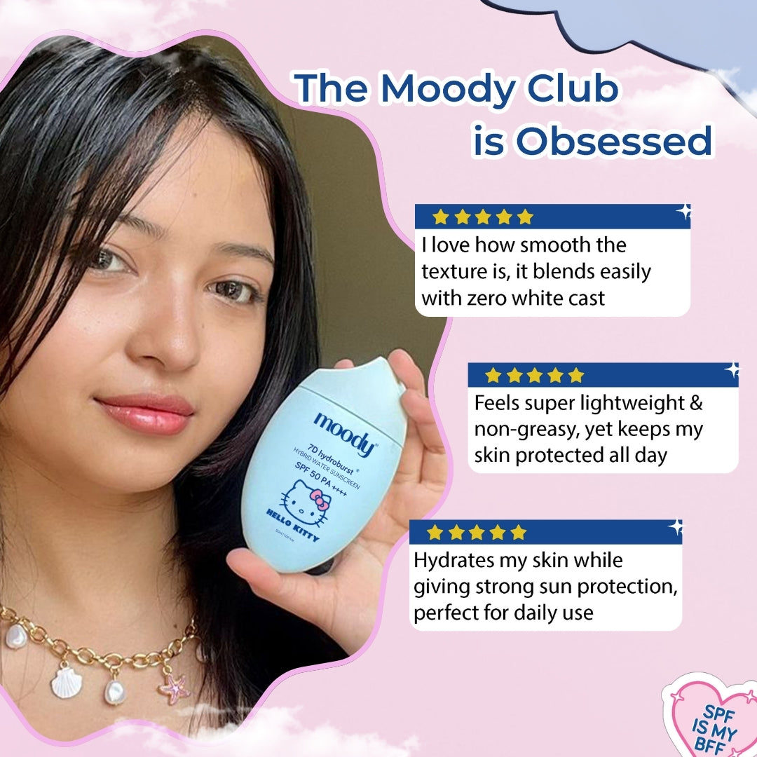 - The Hydro Burst Water Sunscreen SPF 50 PA++++ – Hello Kitty Limited Edition is infused with Hyaluronic Acid to deliver deep, lasting hydration while keeping your skin fresh, plump, and non-greasy all day long.