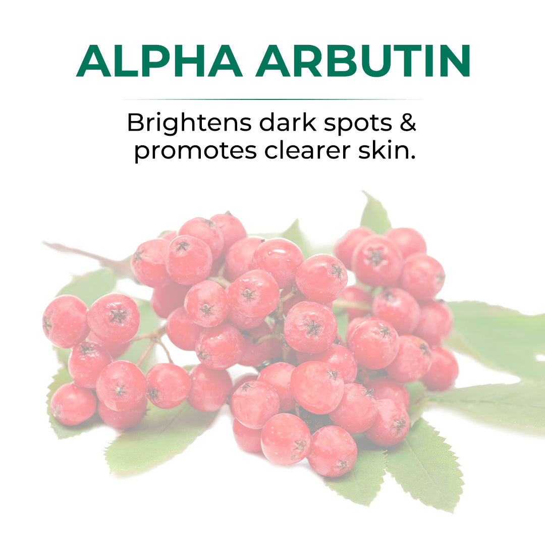 - Prevent formation of dark spots and marks by preventing melanin darkening via alpha arbutin.