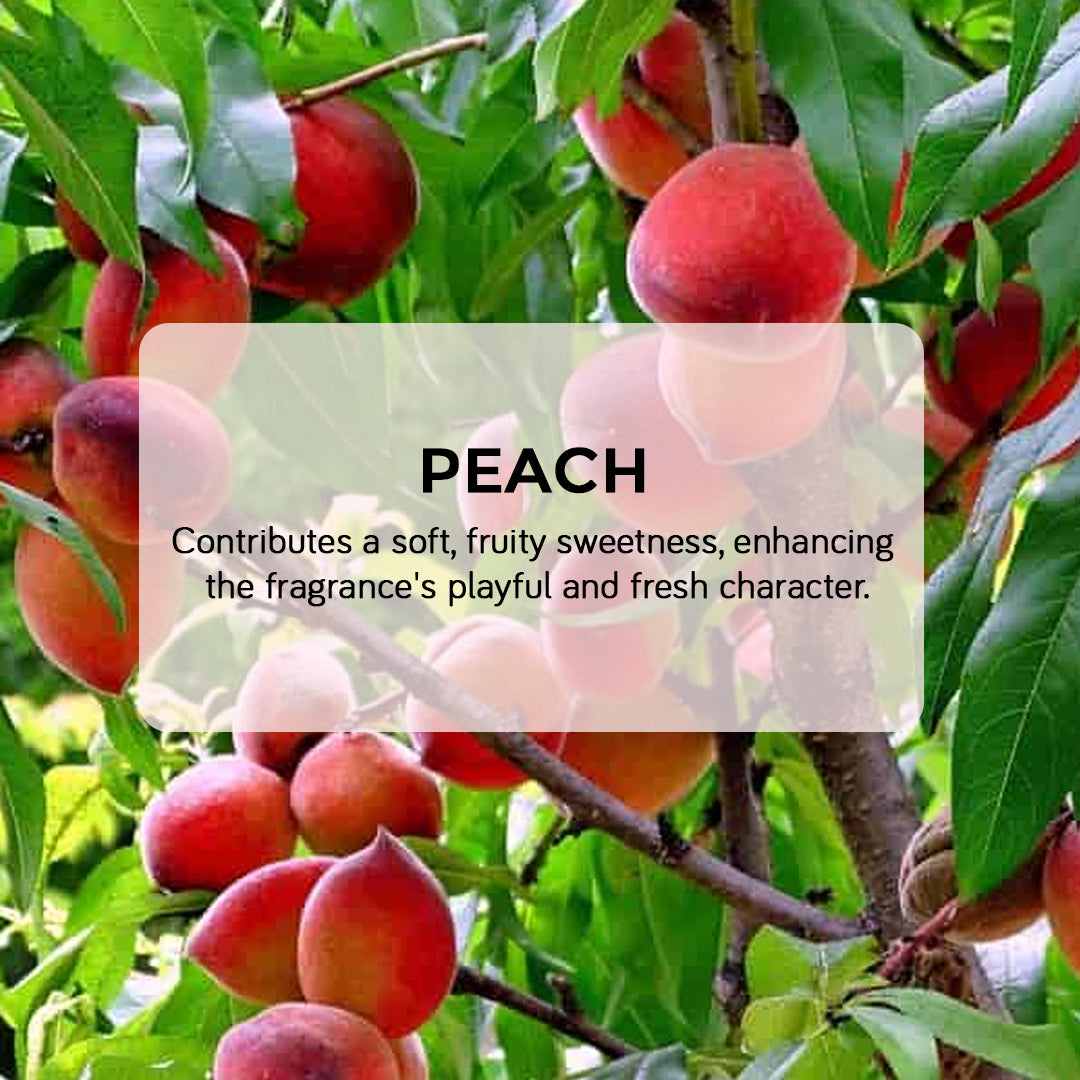 - Top Notes: Blood Orange, Mandarin Orange, Big Strawberry. Middle Notes: Honey, Jasmine, Peach. Base Notes: Delicate Musk, Warm Amber, Soft Woods.