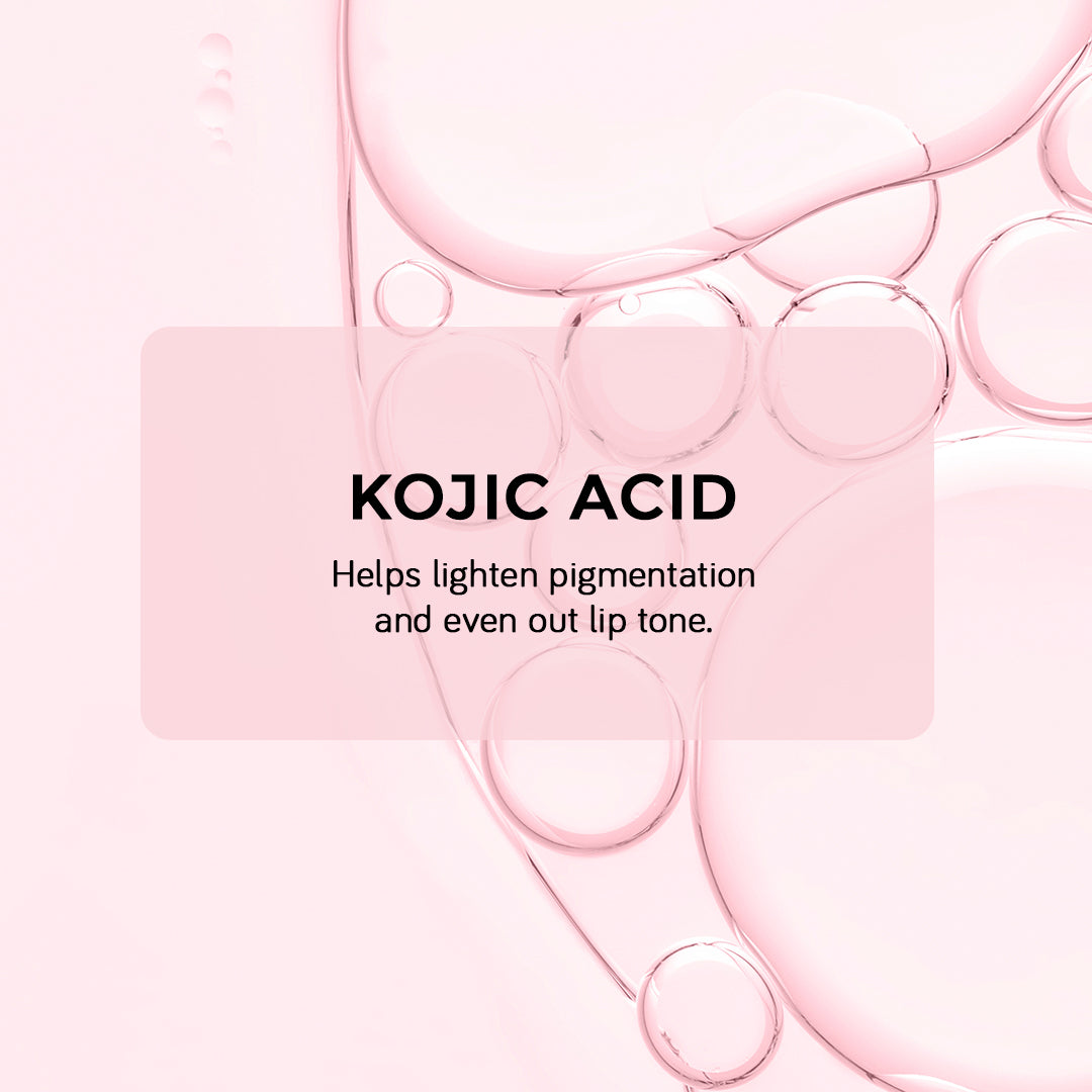 - Kojic Acid and shea butters provide powerful hydration and lock in moisture longer, keeping chapped lips away.