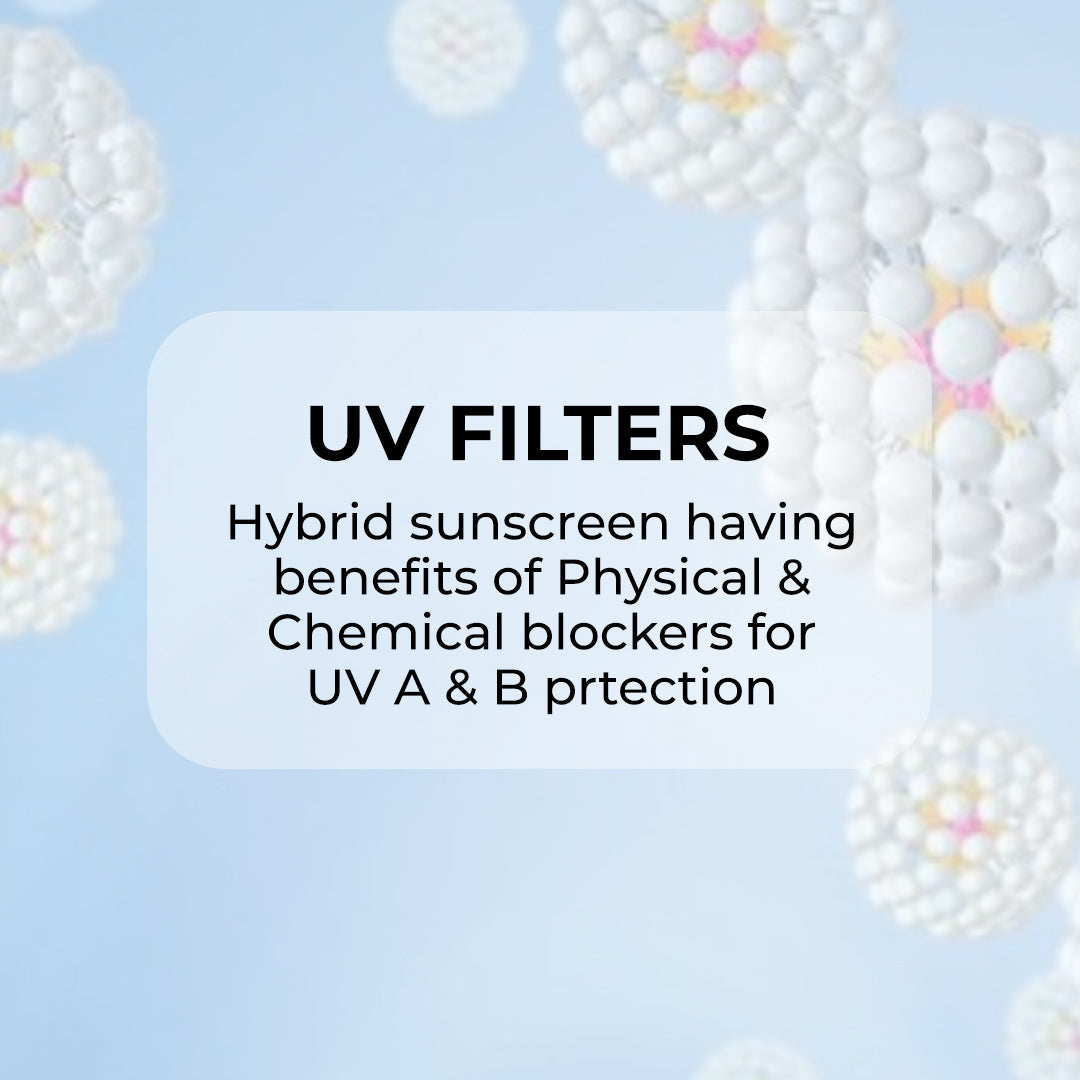 Aqua, Octyl methoxy cinnamate, Octocrylene, Butyl methoxy di benzoyl methane Glycerine, Propanediole, Dicaprylyl carbonate, Cocos Nucifera (Coconut) Fruit Extract , Hydrolyzed hyaluronic acid, Aloe barbadensis(Aloevera) leaf juice, Panthenol, Tocopheryl acetate, Xanthan gum, Sorbitol, Titanium di oxide, Polyacrylate-13, Poly iso butene, Cetearyl alcohol, alcohol,alkylglucoside ,Ceteareth- hydrogenated castor oil, Sodium gluconate, Ethylhexylglycerin,Phenoxyethanol